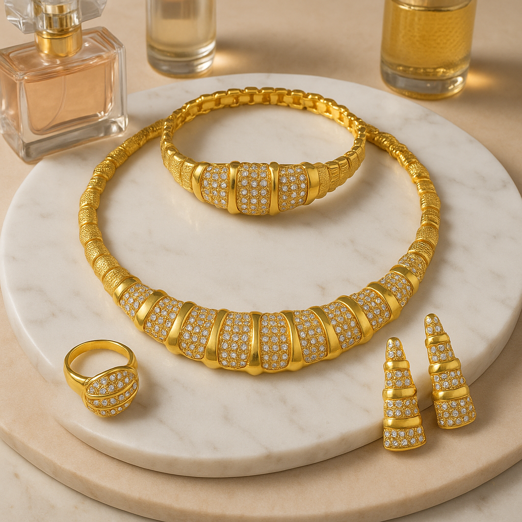 parure 4 pièces en plaquée or 18k de haute qualité