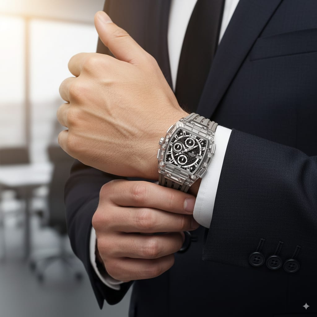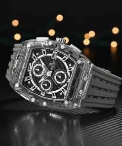 - تصميم شفاف ثوري: يتميز هيكل الساعة بإطار شفاف يمنحها مظهرًا مستقبليًا فريدًا،
