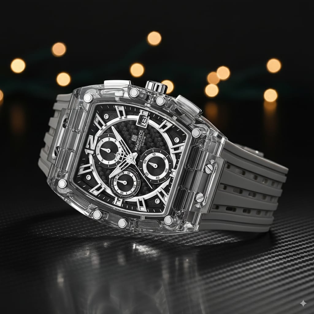 ساعة NAVIFORCE الشفافة: الأناقة العصرية والأداء القوي